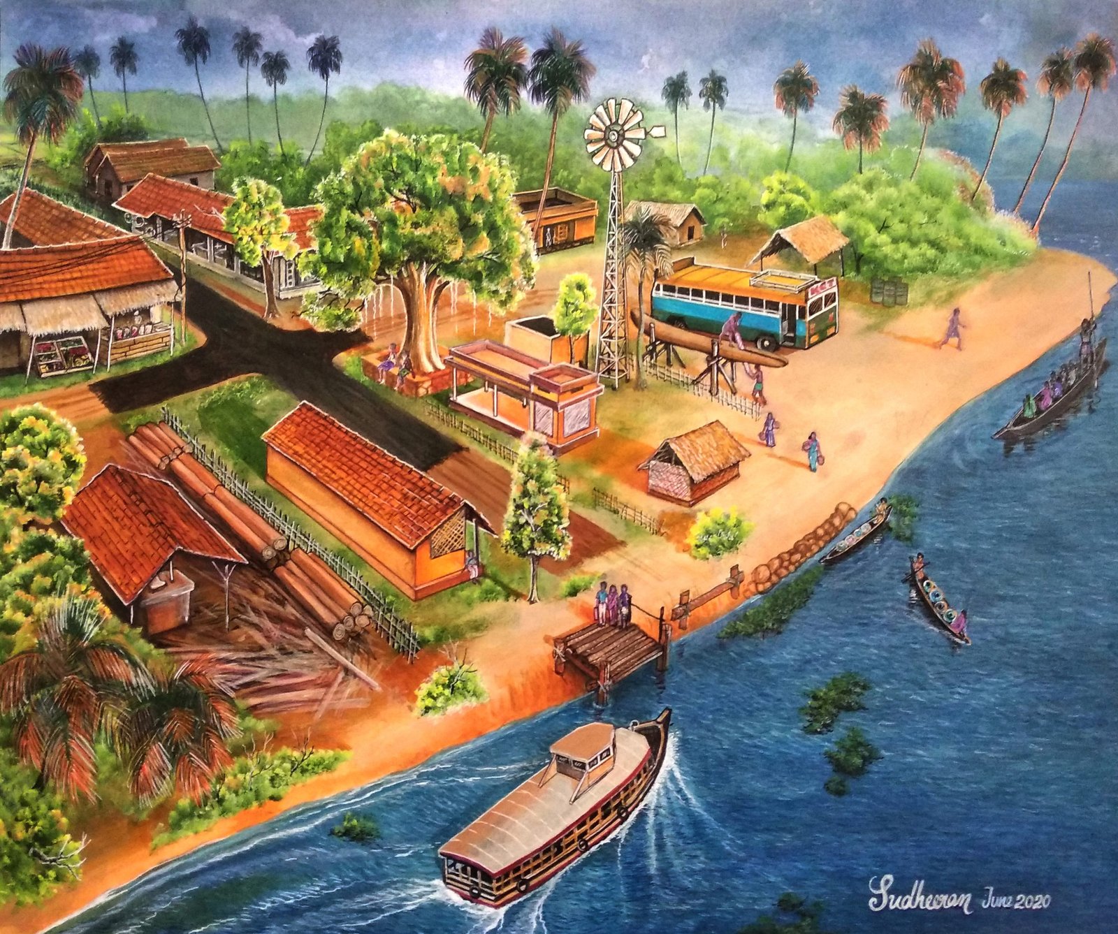 Ayiramthengu, a location situated in the western region near Oachira, holds a rich historical significance with its past amenities including boat services, a bus station, and manual wood cutting services for boat construction. In ancient times, residents living across the shore would utilize boats to transport water from Ayiramthengu. Additionally, a distinct feature of the area was the presence of a windmill water pump that continuously emitted a distinctive noise.