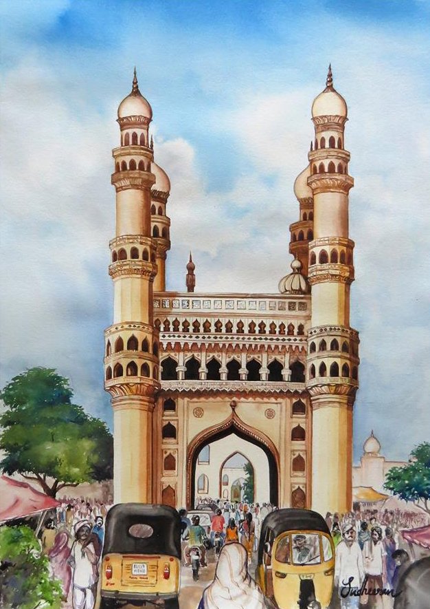 The architecture of Charminar is a fine example of Indo-Islamic design, blending elements of Persian, Turkish, and Indian styles. The monument is adorned with intricate carvings, stucco work, and balconies that offer panoramic views of the bustling streets below. The minarets of Charminar rise to a height of over 48 meters, making it a prominent landmark in the heart of Hyderabad.