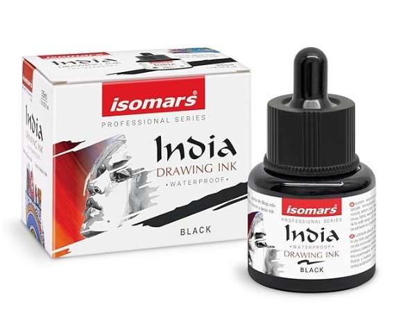 Isomars Waterproof Drawing Ink with Dropper – 35ml | Black India Ink for Calligraphy, Art, Technical Drawing | Fade-Resistant & Quick-Drying