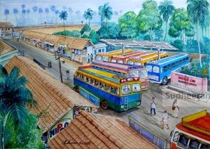 Nostalgic watercolor painting-90s Private bus stand of Kalyankulam, Kerala